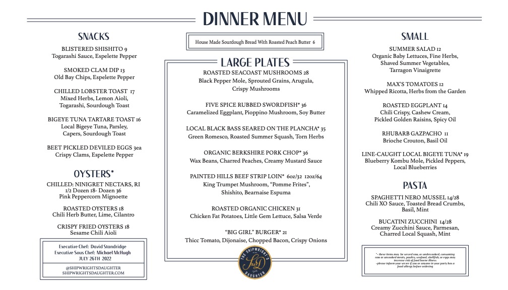 Introducing the menu at The Shipwright's Daughter, a gem nestled in Mystic, CT, is a culinary journey waiting to be savored. With each dish crafted to delight the palate, this restaurant showcases a remarkable blend of flavors that astonish even the most discerning taste buds. Guests rave about the extraordinary menu offerings, from the mouthwatering Duck Toast to the heavenly Scup, each bite reflecting the passion of its chefs.